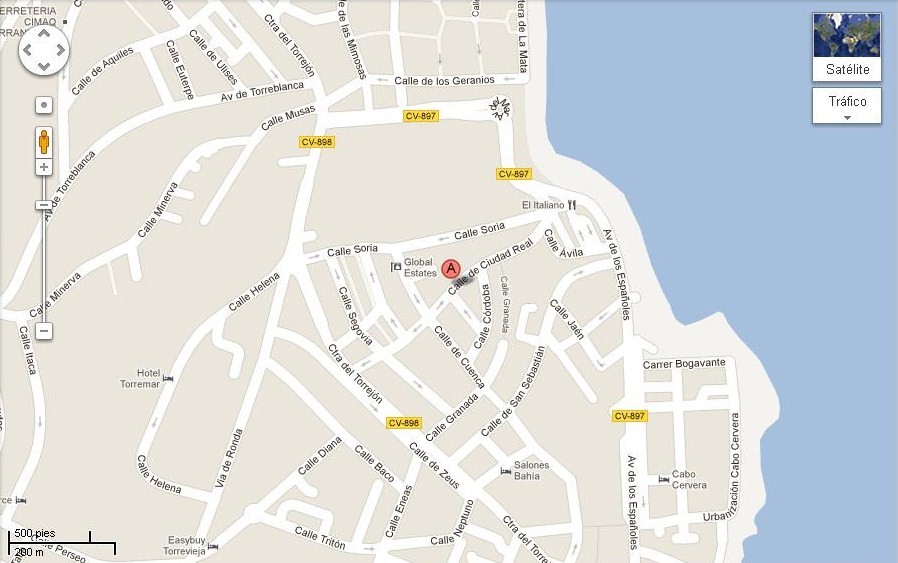 Just outside of the Torrevieja bus station there is a taxi rank. From there to the flat, the journey costs around 7 – 8 € and takes about 10 minutes. A good landmark for the taxi driver is MAGANI café.